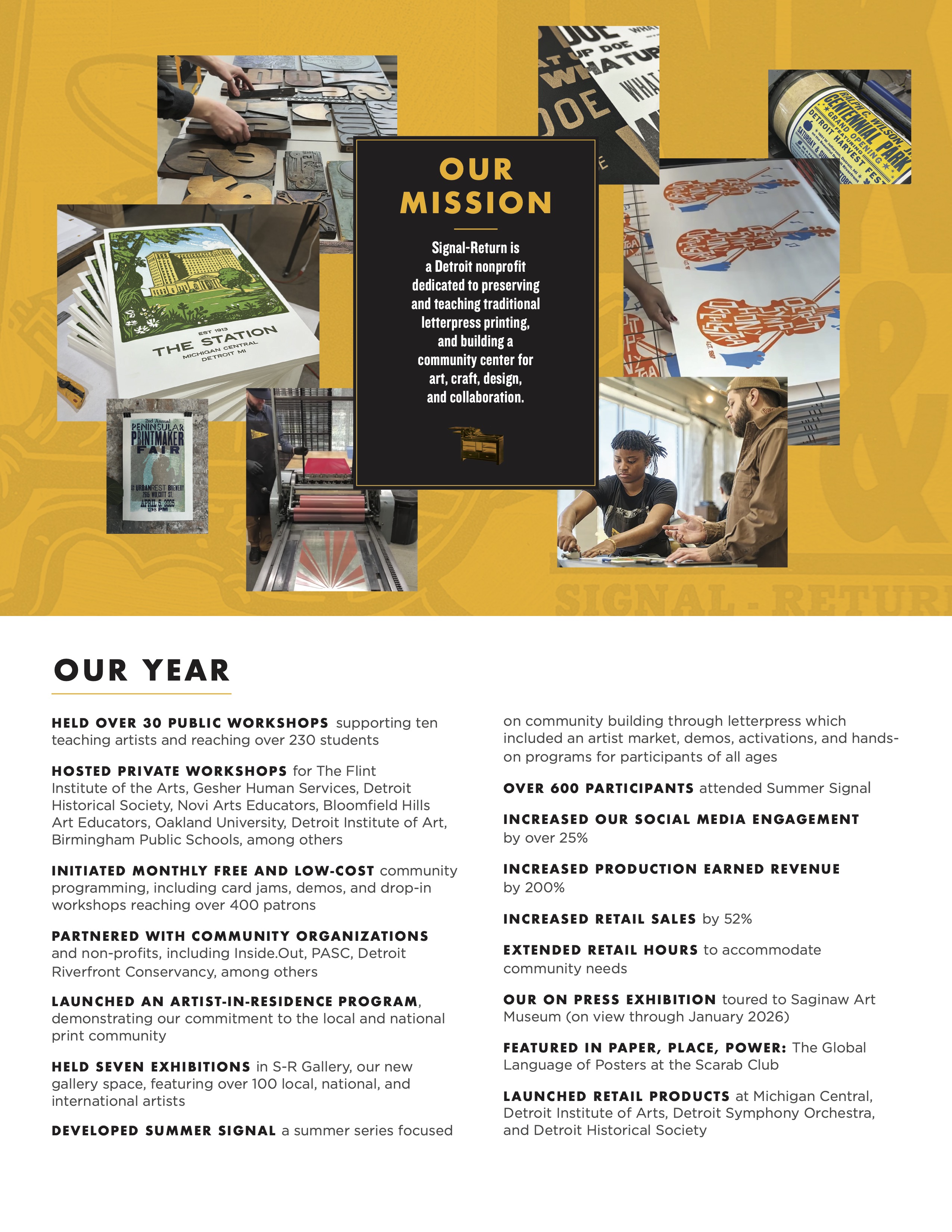 ✨ As 2025 comes to a close, we’re pressing forward into 2026—and we need your help!✨ Signal-Return has become a hub for creativity and collaboration, showcasing over 100 artists, running hands-on workshops, and connecting communities through printmaking. Your support keeps our presses rolling and our mission thriving 💌